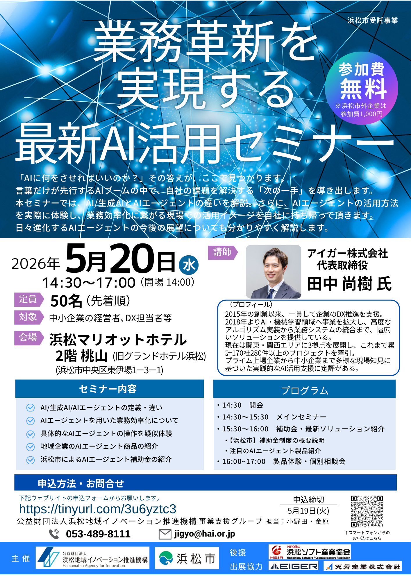 | 参加費 | 無料 ※浜松市外企業は参加費1,000円(税込) |