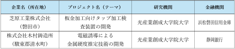 静岡県内の中小企業を対象とし、研究機関・金融機関が連携チームを組み、